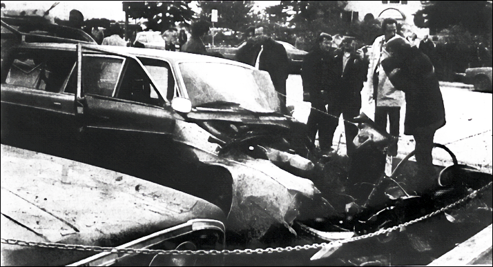 For now let’s start at 2:10 pm, Thursday, September 30, 1976. The day a car bomb went off at a rudimentary parking lot in downtown Anchorage, Alaska. For starters, check out the photo below. Muriel’s office is marked by the arrow at top left. Now head to bottom right. The obvious feature? Most of the vehicles along that fence line have their hoods popped open. Why? Because… Investigators were looking for more bombs. Notably, they didn’t find any, an indication that this bomb was targeted for one car and one car only: The orange Volvo station wagon owned by Muriel Pfeil, marked by the arrow at lower right. She’s the “sister” in this story. Sister of a soon-to-be second victim: her brother Robert. But that’s for later.